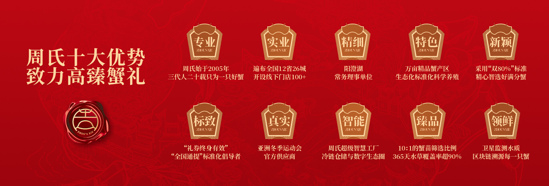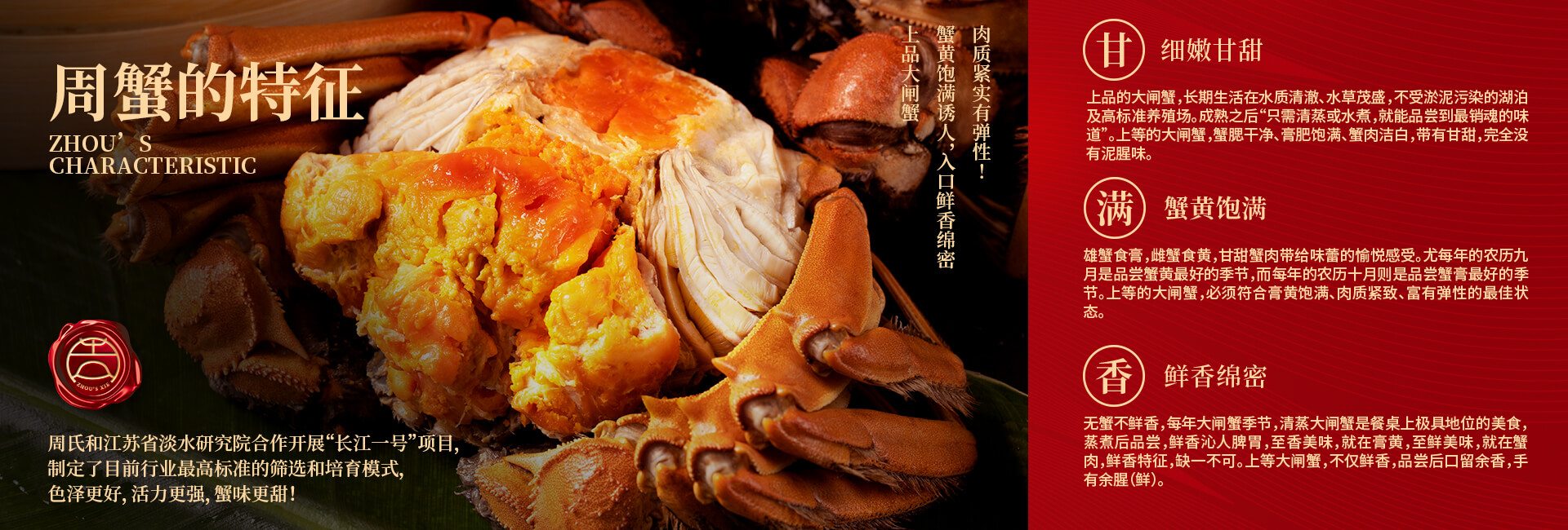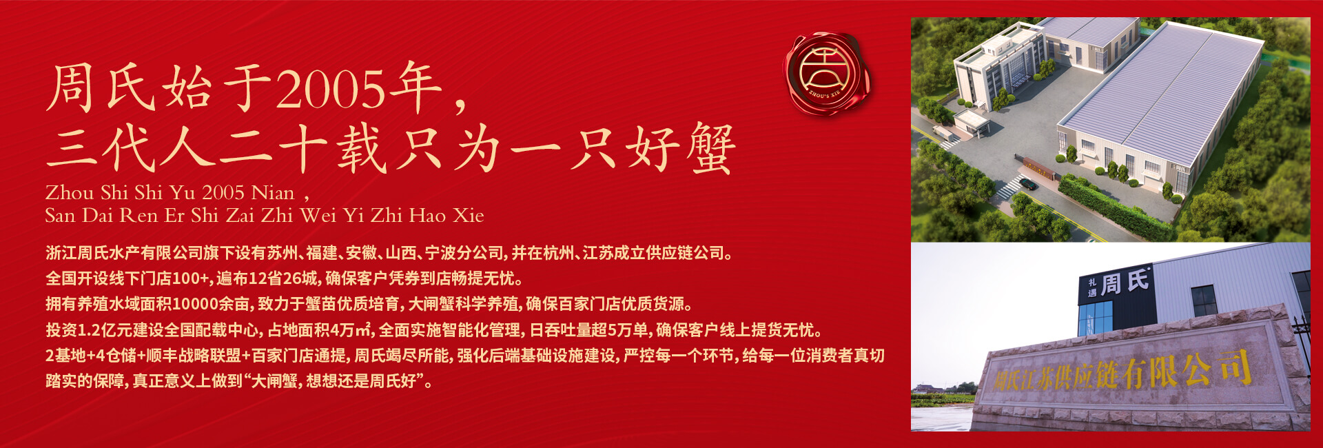 周氏水產精品大閘蟹,14年匠心沉淀,全國87家直營門店,100只大閘蟹只精選最優(yōu)50只。不虛標規(guī)格,不玩???